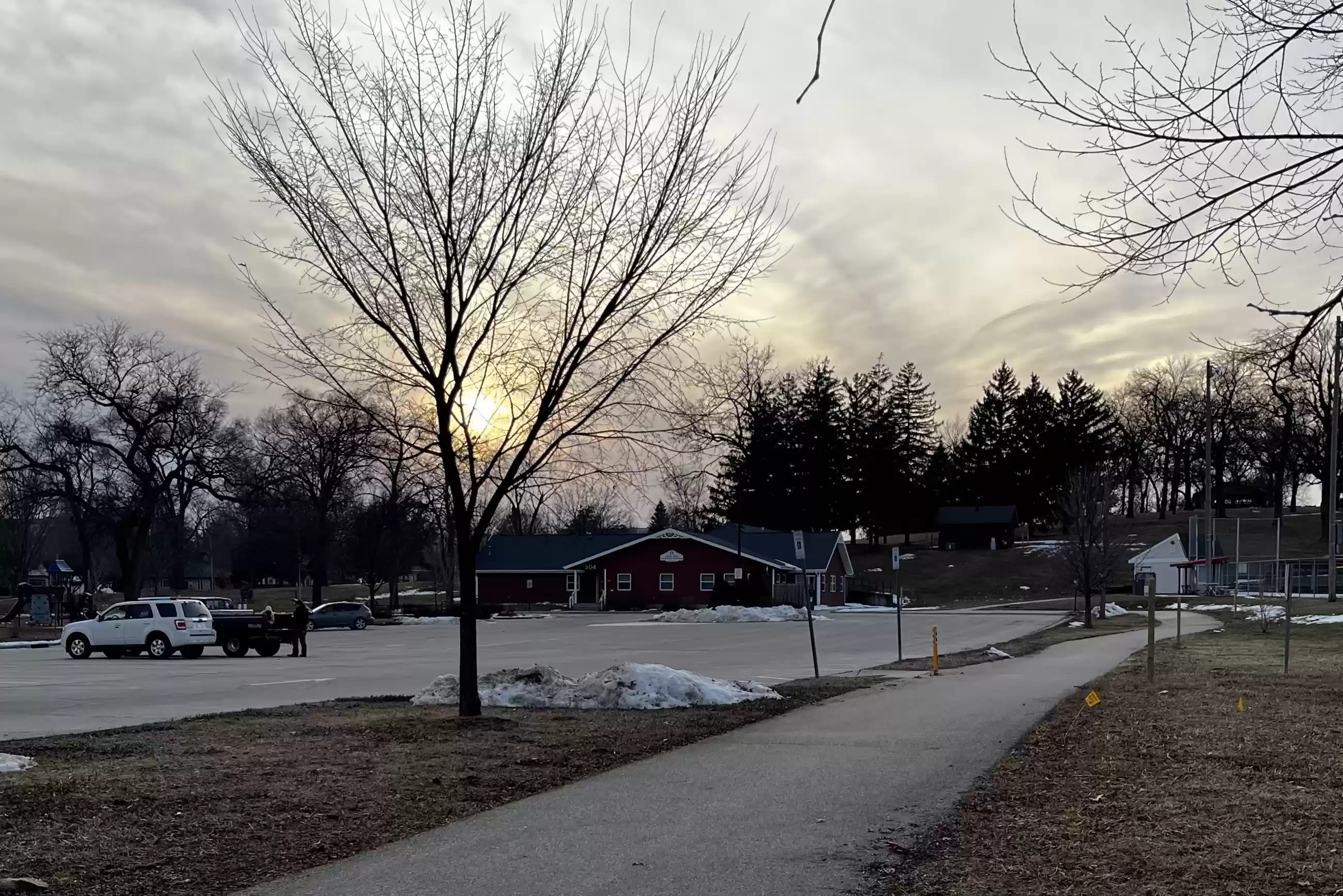 Horseshoe game field. Traverse the parking lot south along N Prairie to Starin