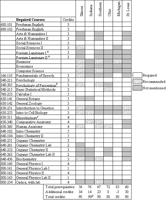 coursework. bOther psychology courses would be fine but this is the most applicable topic to optometry. cMicrobiology has prerequisites of 141, 142, 251, and 253. dFor Indiana at least 20 of the 90 required credits must be at the 300-400 level. |