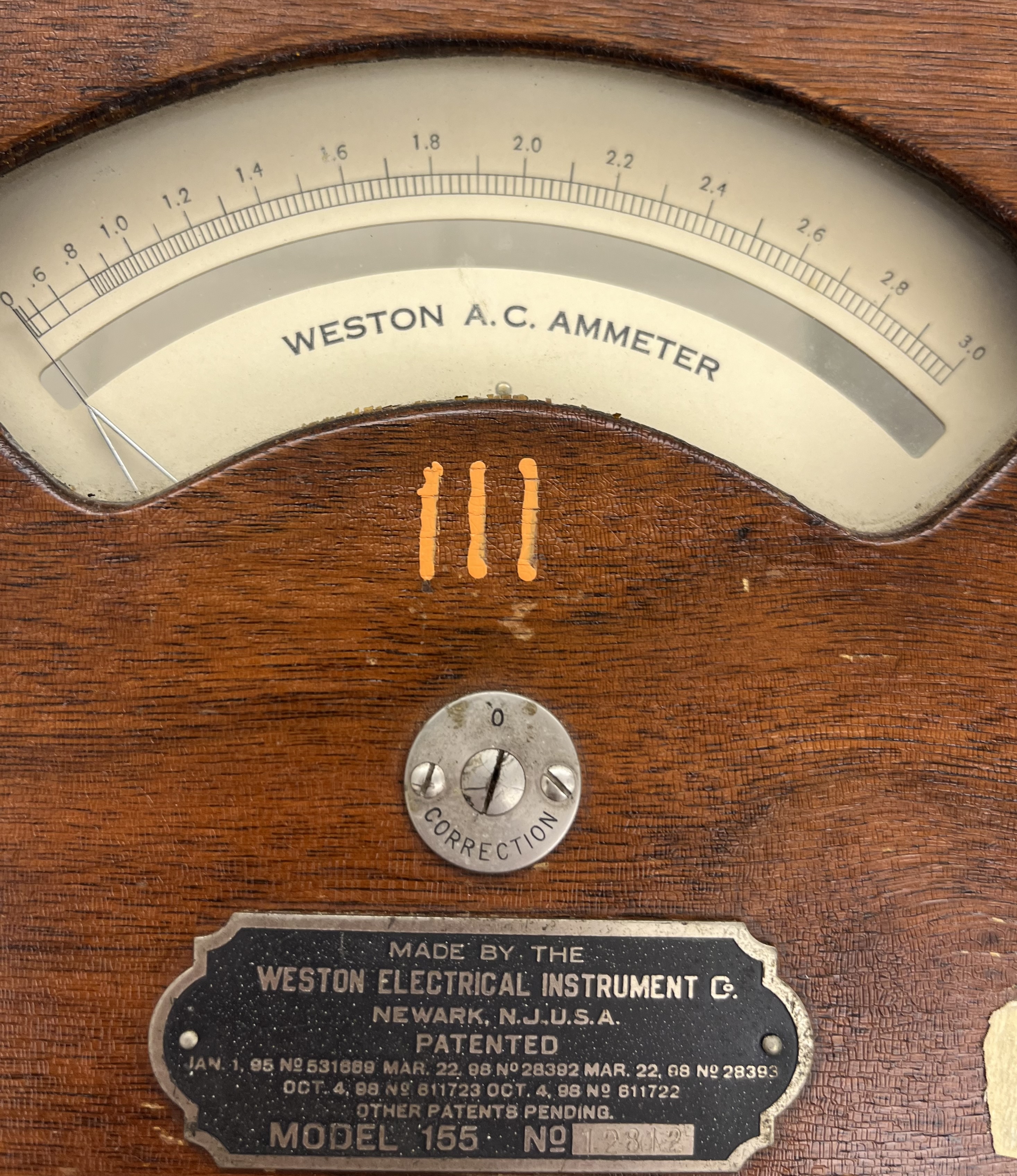 Additional information of a similar item is at Radiomuseum AC-Ammeter 155.